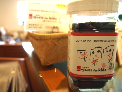 味付け海苔は基本的に醤油を使うんですが、この【明石のり for kids】は、鰹節などの天然だしと淡路の藻塩を使用して味付けされているので、アレルギー原材料は一切入っておりません。