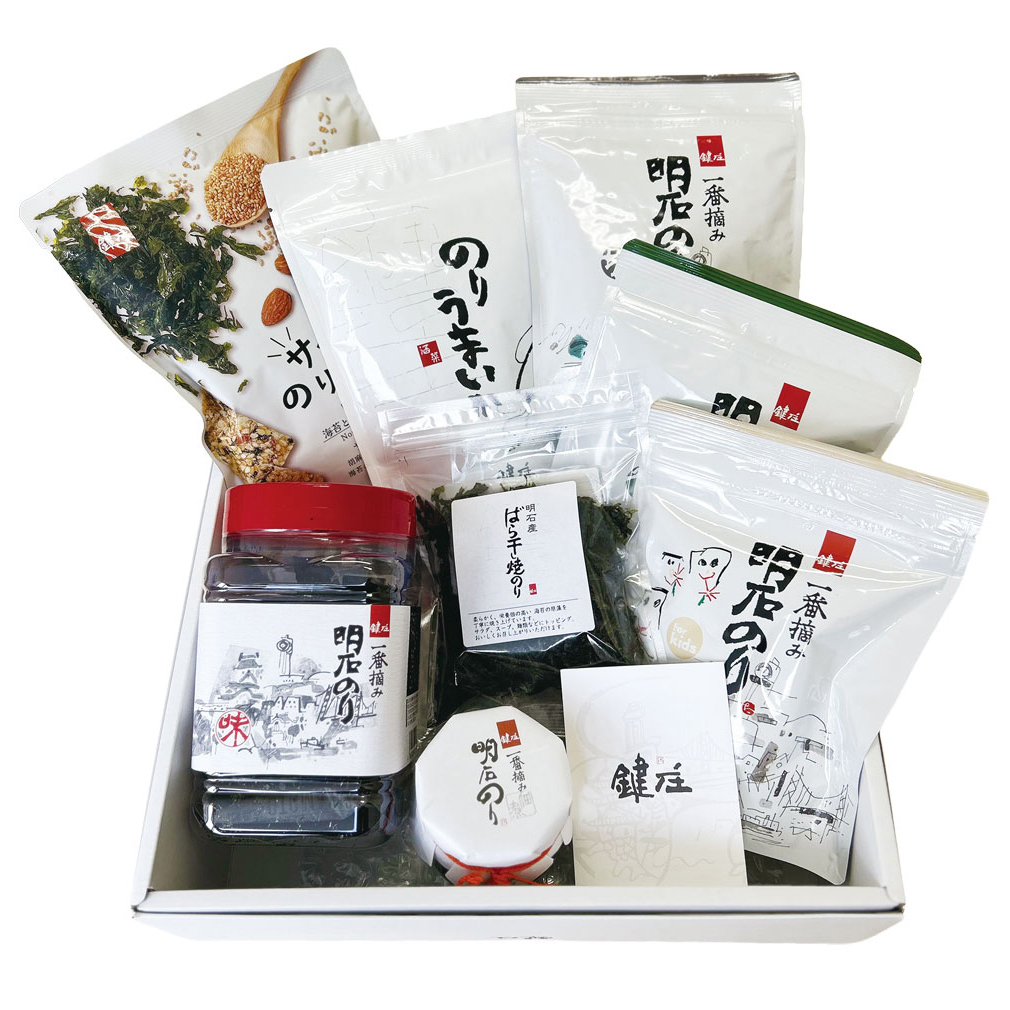 新商品の「サクッとのりおこし」や海苔を楽しむ心づくしの詰合せです